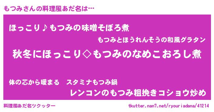 | 意味不明あだ名 | 『ペロリンもつみ』『自称もつみ』 |