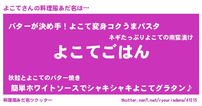 | 男性向けラノベタイトル風あだ名 | 『ヨコテスレイヤー』 |