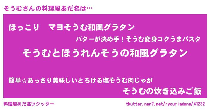 | ヒーロー風カッコイイあだ名 | 『仮面ソウダー』『天空の使者そうむ』 |