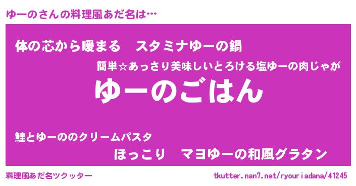 | 意味不明あだ名 | 『たけのこ科ゆーの属』『永久保存ゆーの』 |