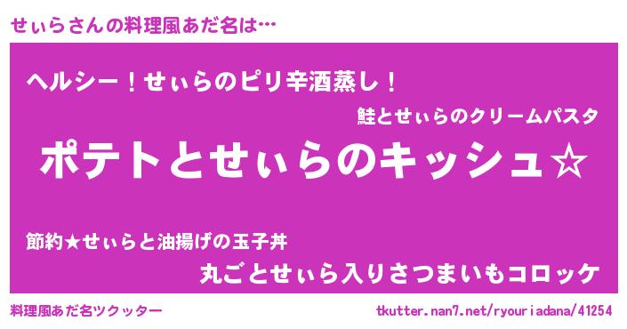 | 意味不明あだ名 | 『とにかく怪しいせぃら』『自称せぃら』 |