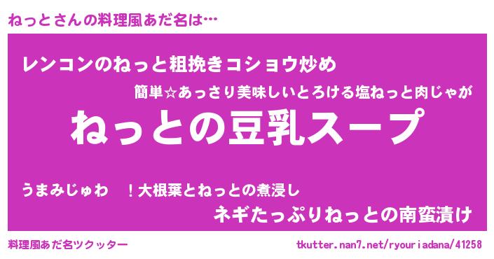 | ヒーロー風カッコイイあだ名 | 『黄金騎士ネッ』『最強戦士ネット』 |
