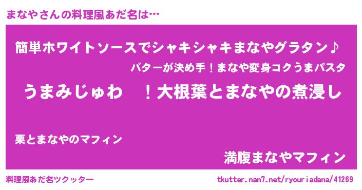 | 意味不明あだ名 | 『まなやフォーエバー』『永久保存まなや』 |
