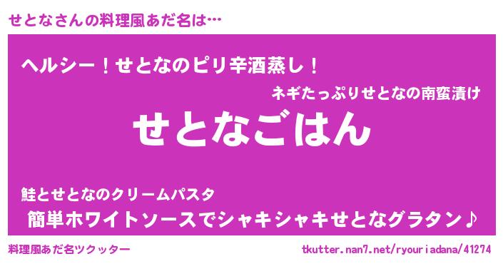 | 恥ずかしいあだ名 | 『セトナデラックス』『セトリンリン』 |