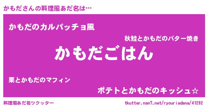 | 男性向けラノベタイトル風あだ名 | 『カモダスレイヤー』『魔弾の王とかもだ』 |