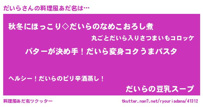 | ヘコむあだ名 | 『だいぷりん』『だいら(爆)』『豆乳』 |