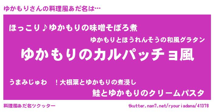 | ヘコむあだ名 | 『ゆかもー』『豆乳』『ゆか太郎』 |