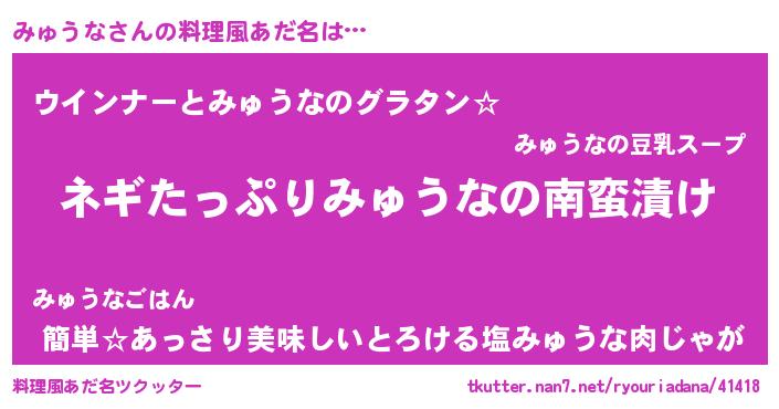 | 意味不明あだ名 | 『ペロリンみゅうな』『永久保存みゅうな』 |