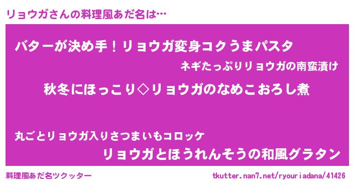 | ヒーロー風カッコイイあだ名 | 『慈愛の使者リョウガ』『仮面リョダー』 |