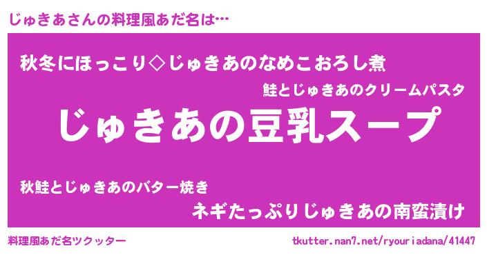 | 女子向けラノベタイトル風あだ名 | 『じゅきあは平凡を望む』 |