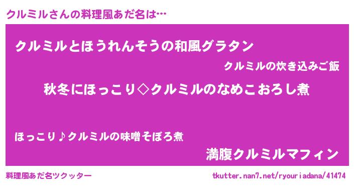 | 男性向けラノベタイトル風あだ名 | 『クルミルに滅ぼされるだけの簡単なお仕事です』 |