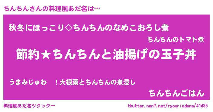 | 男性向けラノベタイトル風あだ名 | 『ちんちんの憂鬱』『チンチンスレイヤー』 |