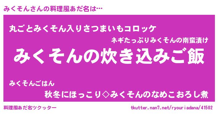 | 意味不明あだ名 | 『住所不定無職みくそん(93歳)』 |