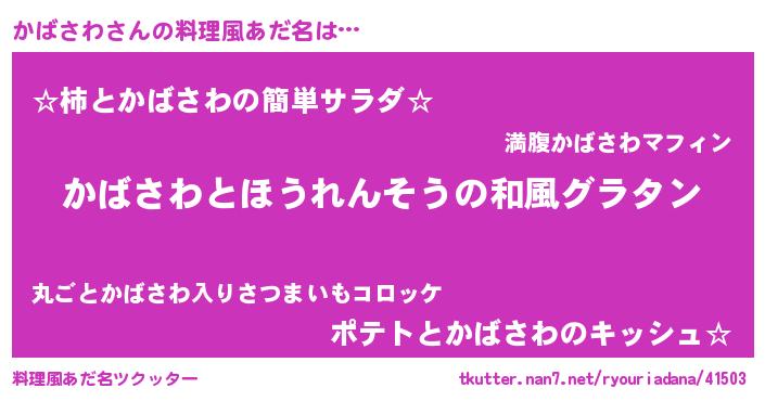 | 意味不明あだ名 | 『ニラ科かばさわ属』『永久保存かばさわ』 |
