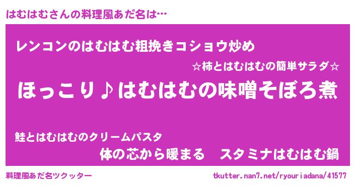 | ファンタジー風あだ名 | 『ハムフェル』『ゼハムトゥ』 |