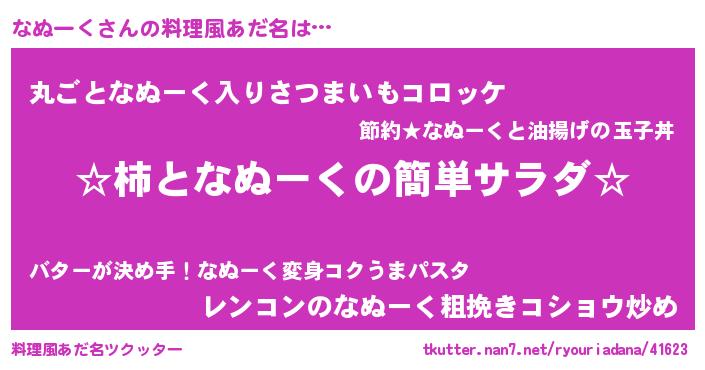 | 男性向けラノベタイトル風あだ名 | 『緋弾のナヌーク』『魔弾の王となぬーく』 |