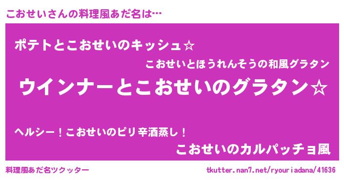 | 欧米人風あだ名 | 『こおせいクリステル』 |