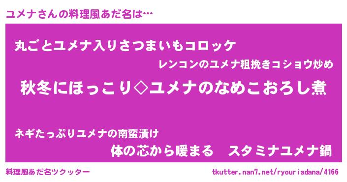 | ヘコむあだ名 | 『レバニラ』『ユメっふぃ~』 |