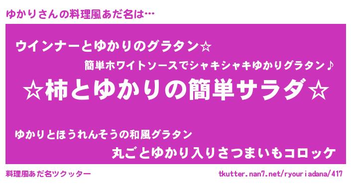 | 欧米人風あだ名 | 『ゆかり・ステッグマイヤー』 |