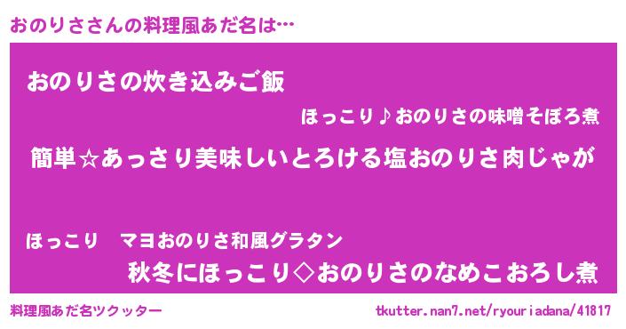 | 意味不明あだ名 | 『永久保存おのりさ』『ペロリンおのりさ』 |