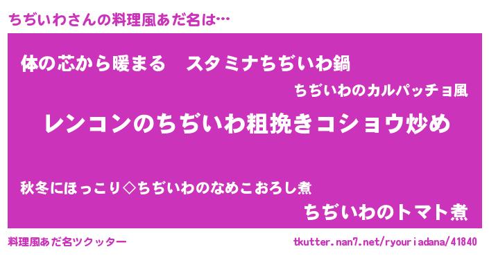 | 女子向けラノベタイトル風あだ名 | 『ちぢいわなんてお断りですっ。』 |
