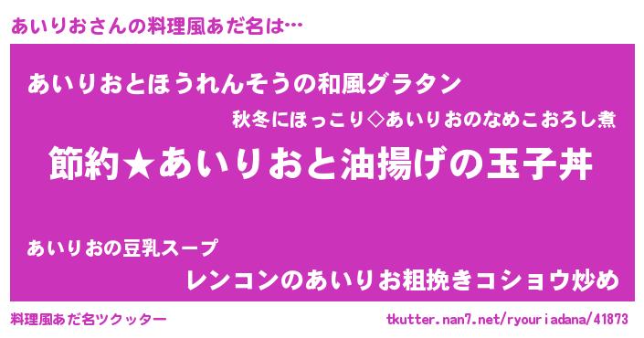 | 意味不明あだ名 | 『ペロリンあいりお』『自称あいりお』 |