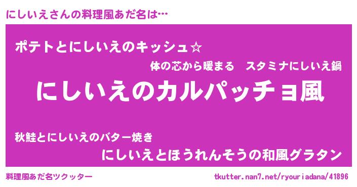 | 意味不明あだ名 | 『住所不定無職にしいえ(8歳)』 |