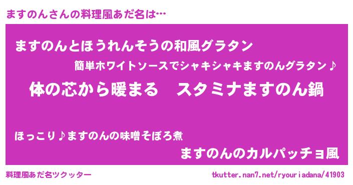 | 肩書あだ名 | 『ますのん総理大臣』『ますのん大将』 |