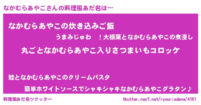 | 男性向けラノベタイトル風あだ名 | 『魔弾の王となかむらあやこ』 |