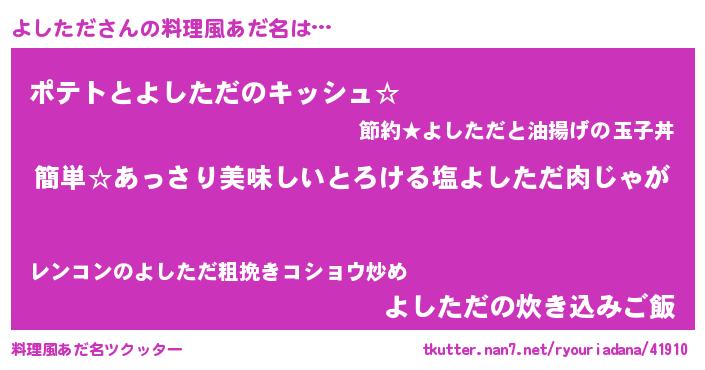 | 意味不明あだ名 | 『永久保存よしただ』『ペロリンよしただ』 |
