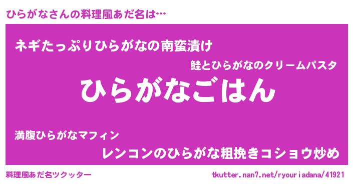 | 男性向けラノベタイトル風あだ名 | 『ヒラガナスレイヤー』 |