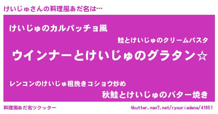 | ヘコむあだ名 | 『豆乳』『けいじゅ(笑)』『けい太郎』 |