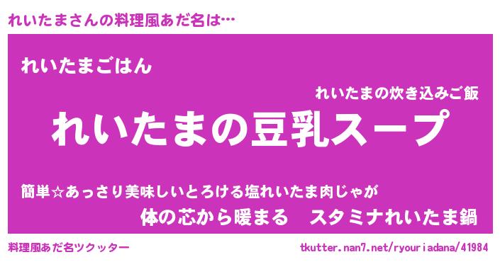 | 意味不明あだ名 | 『とにかく怪しいれいたま』 |