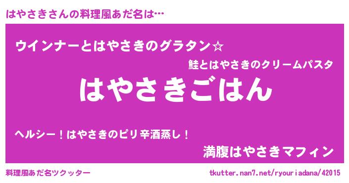| 意味不明あだ名 | 『めかぶ科はやさき属』『自称はやさき』 |