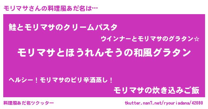 | 意味不明あだ名 | 『もやし科モリマサ属』『自称モリマサ』 |