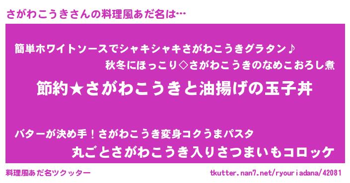 | ピコ太郎風あだ名 | 『サコ次郎』『サガ太郎』『ササ太郎』 |
