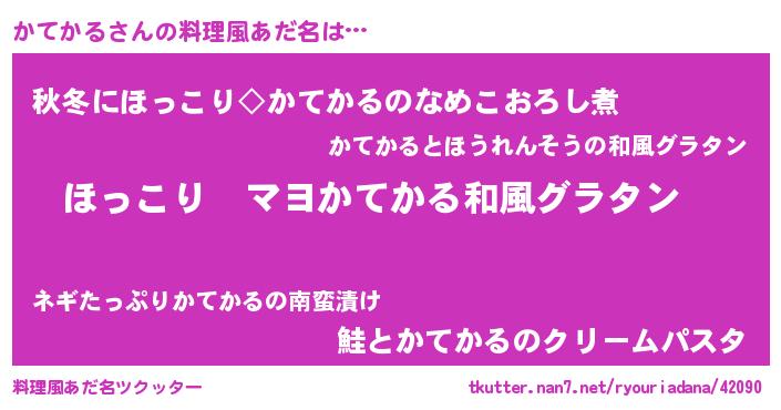 | 男性向けラノベタイトル風あだ名 | 『この素晴らしい世界にかてかるを!』 |