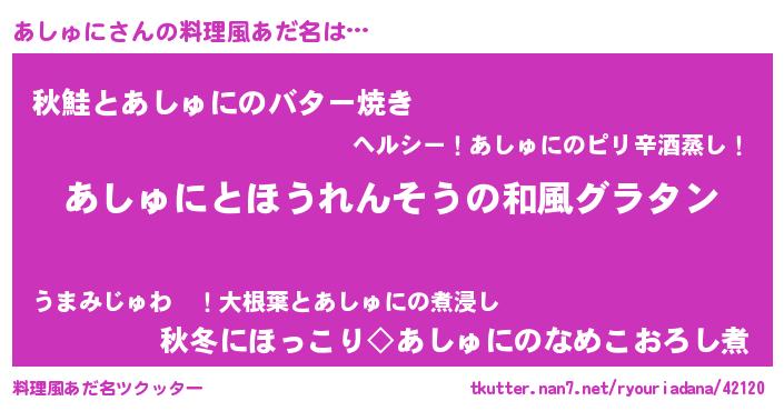 | 意味不明あだ名 | 『ヨモギ科あしゅに属』『自称あしゅに』 |