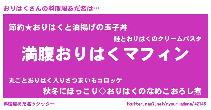 | 胡散臭い通販商品みたいなあだ名 | 『絶対に幸福をもたらす健康食品…その名も「おりはく」』 |