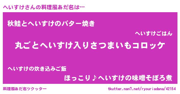 | 男性向けラノベタイトル風あだ名 | 『この素晴らしい世界にへいすけを!』 |