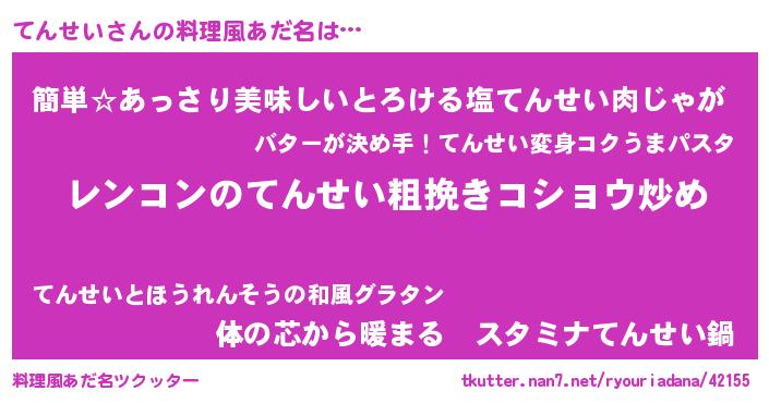 | 意味不明あだ名 | 『自称てんせい』『永久保存てんせい』 |