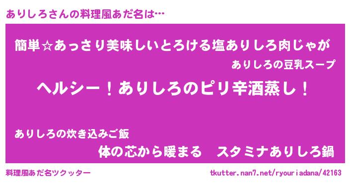 | 意味不明あだ名 | 『自称ありしろ』『永久保存ありしろ』 |