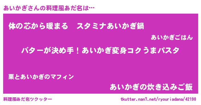 | ポケモン風あだ名 | 『アックウザ』『アイカダネ』 |