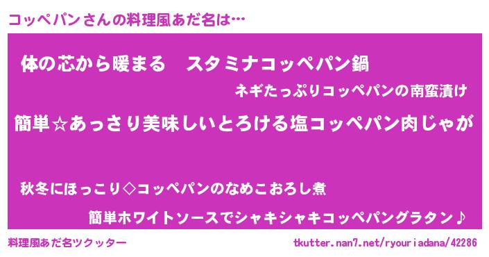 | 意味不明あだ名 | 『永久保存コッペパン』『自称コッペパン』 |