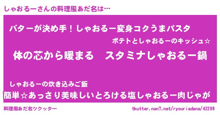 | 男性向けラノベタイトル風あだ名 | 『やはりしゃおるーの青春ラブコメはまちがっている 』 |