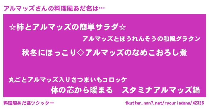 | 男性向けラノベタイトル風あだ名 | 『アルマッズに滅ぼされるだけの簡単なお仕事です』 |