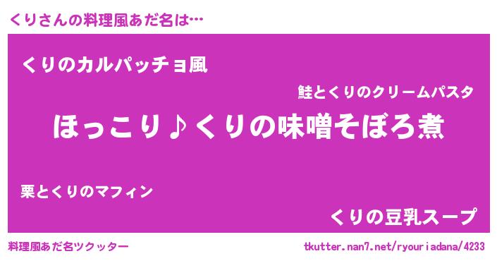 | ピコ太郎風あだ名 | 『クコ太郎』『クリ三郎』『クク太郎』 |