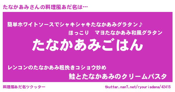 | ポケモン風あだ名 | 『タナキング』『ヒタナカアミ』 |