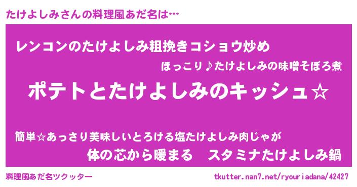 | 意味不明あだ名 | 『とにかく怪しいたけよしみ』 |