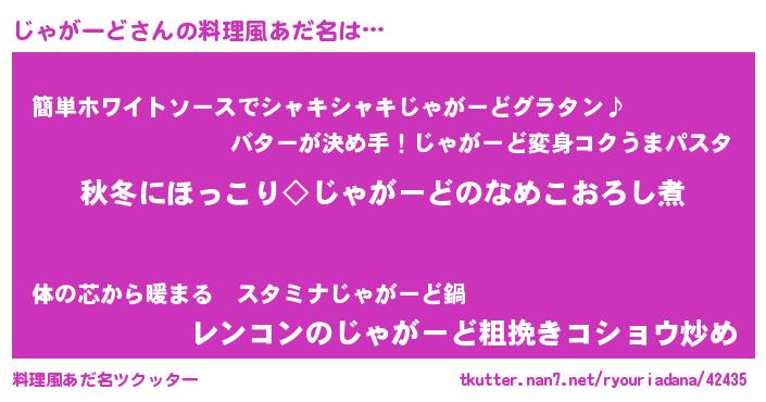 | 萌えアニメ | 主人公(じゃがーど)のあだ名『 じゃじゃきゅん』 |